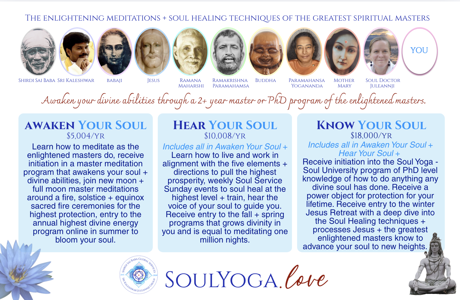 Receive initiation into a one year master meditation program that awakens your soul and divine abilities.
