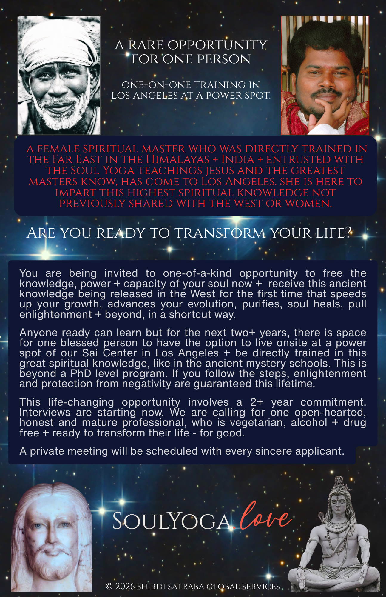 A rare opportunity for one person in los angeles to live at a spiritual center, speed up their soul's evolution, receive soul healing & beyond.