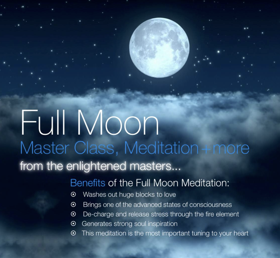 Our moon events combine one hour of ancient knowledge teachings followed by at least one hour of meditations to decharge negativity and recharge/feed your soul positivity divine energy. There are different meditations on the full and new moon with different benefits.
